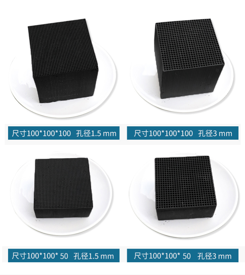 蜂窝活性炭的材质一般有煤质、木质、果壳和椰壳等这几种,一般来说煤质的话重一些,木质、果壳、椰壳的话轻一些,但是一般也在上述标准之内。